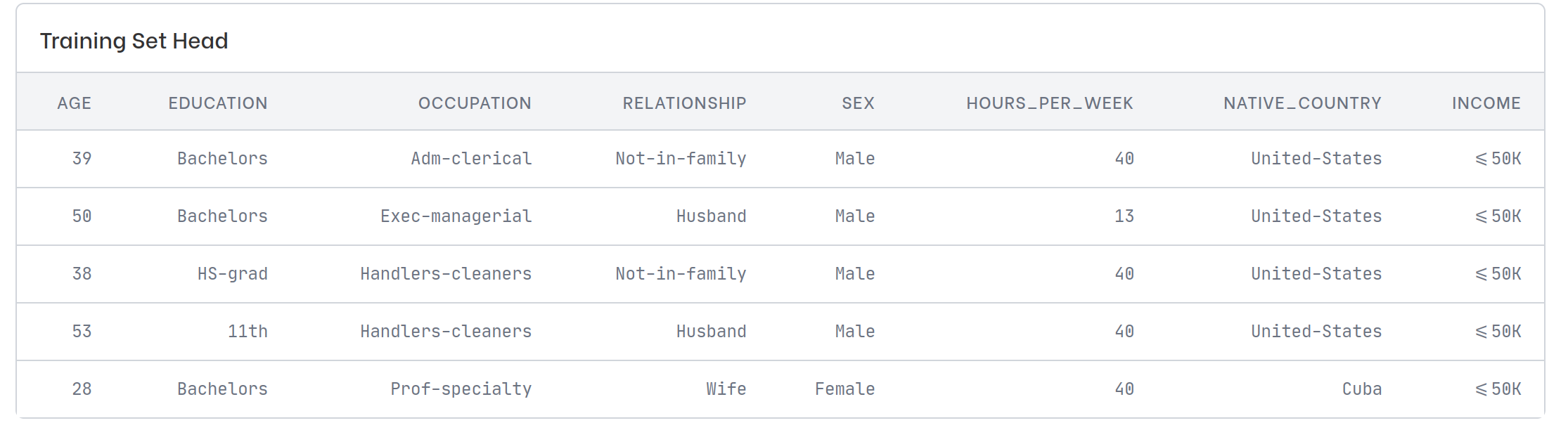 We are going to use the popular open dataset _UCI Adult_ that contains a set of categorical and numerical features about individuals. Here’s a short extract from the dataset: