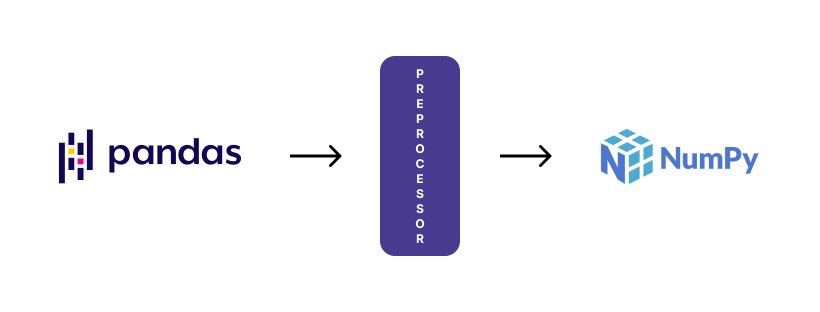 Finally, another important decision in the implementation concerned both the format for the input data and for the output of our preprocessing pipeline. For our library we focused on the most common formats for tabular data. In particular, the raw data received, in the form of a csv file, is read as a Pandas DataFrame. The data returned by the preprocessor instead takes the form of a Numpy Ndarray.